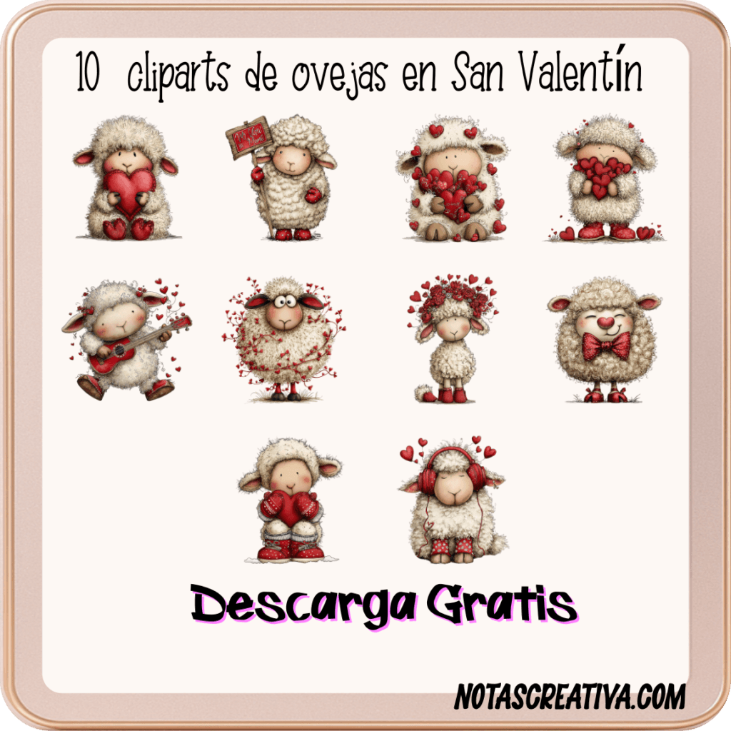 🎁 Descarga gratis: 10 cliparts de ovejas de San Valentín