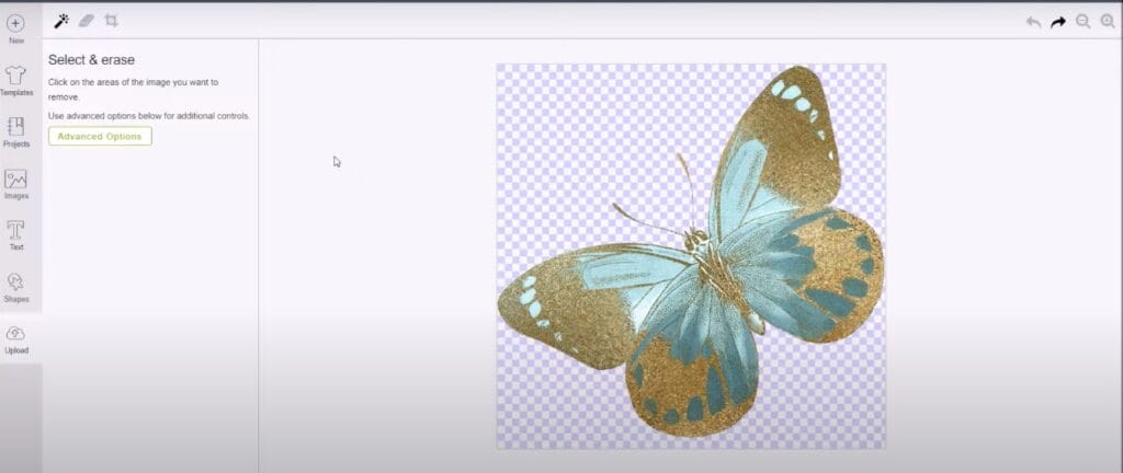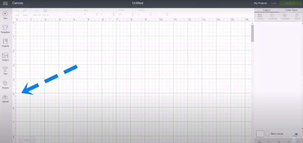 Comience abriendo un lienzo nuevo en blanco en Cricut Design Space. Haga clic en Cargar en el Panel de diseño en el lado izquierdo de su lienzo.