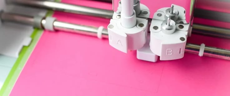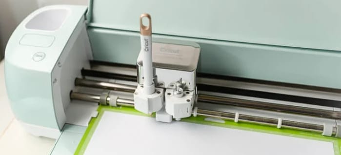 Selecciona tu material (en este caso, cartulina), coloca tu material en el tapete e insértalo en Cricut Explore, y haz clic en el botón “Ir” en tu máquina y comenzará a cortar tu tarjeta desde la capa superior. hasta el fondo. Realmente no podría ser más fácil.